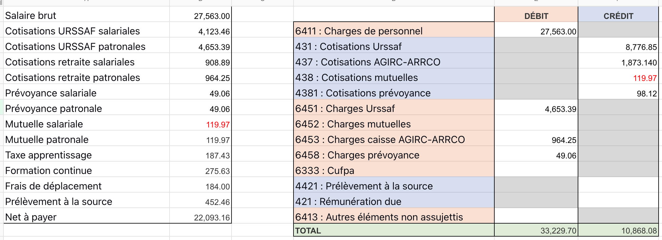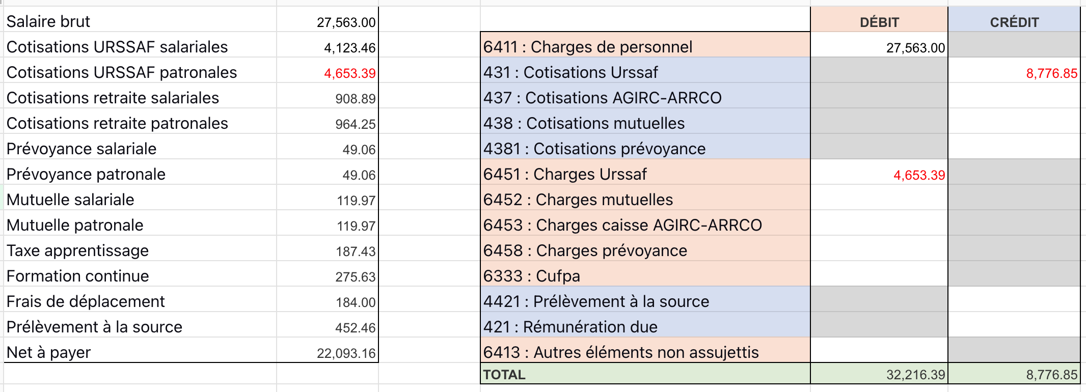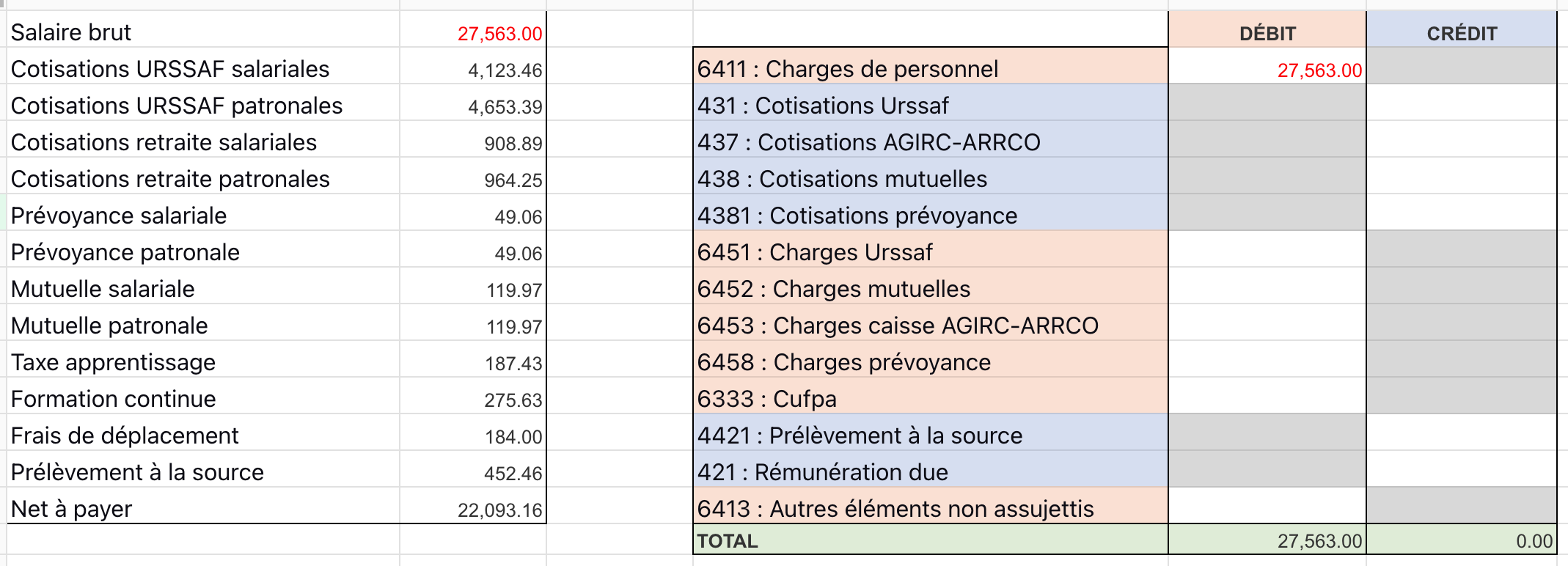 👉 En résumé: le coût total employeur = salaire brut + charges patronales + remboursements de frais. C’est ce qui apparaît au débit des comptes de classe 6.